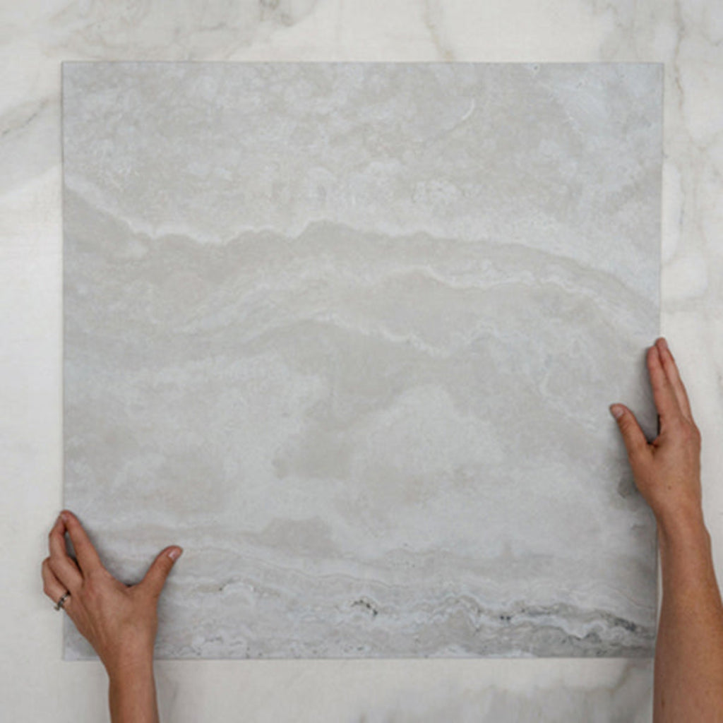 Pearl Ivy Vein Cut Travertine Look Tile Tech Grip 600 x 600 x 10mm Porcelain